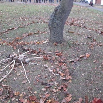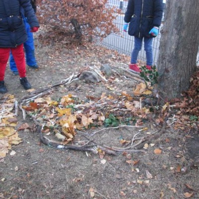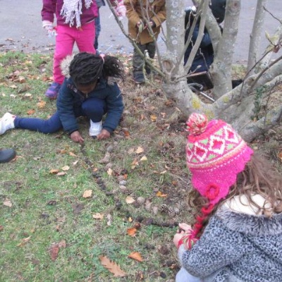 On a very chilly day at the end of November the whole school took part in an Outdoor Classroom Day. Each class was set the challenge of choosing a tree in the school grounds, grounds, identifying it and decorating it with only natural objects.