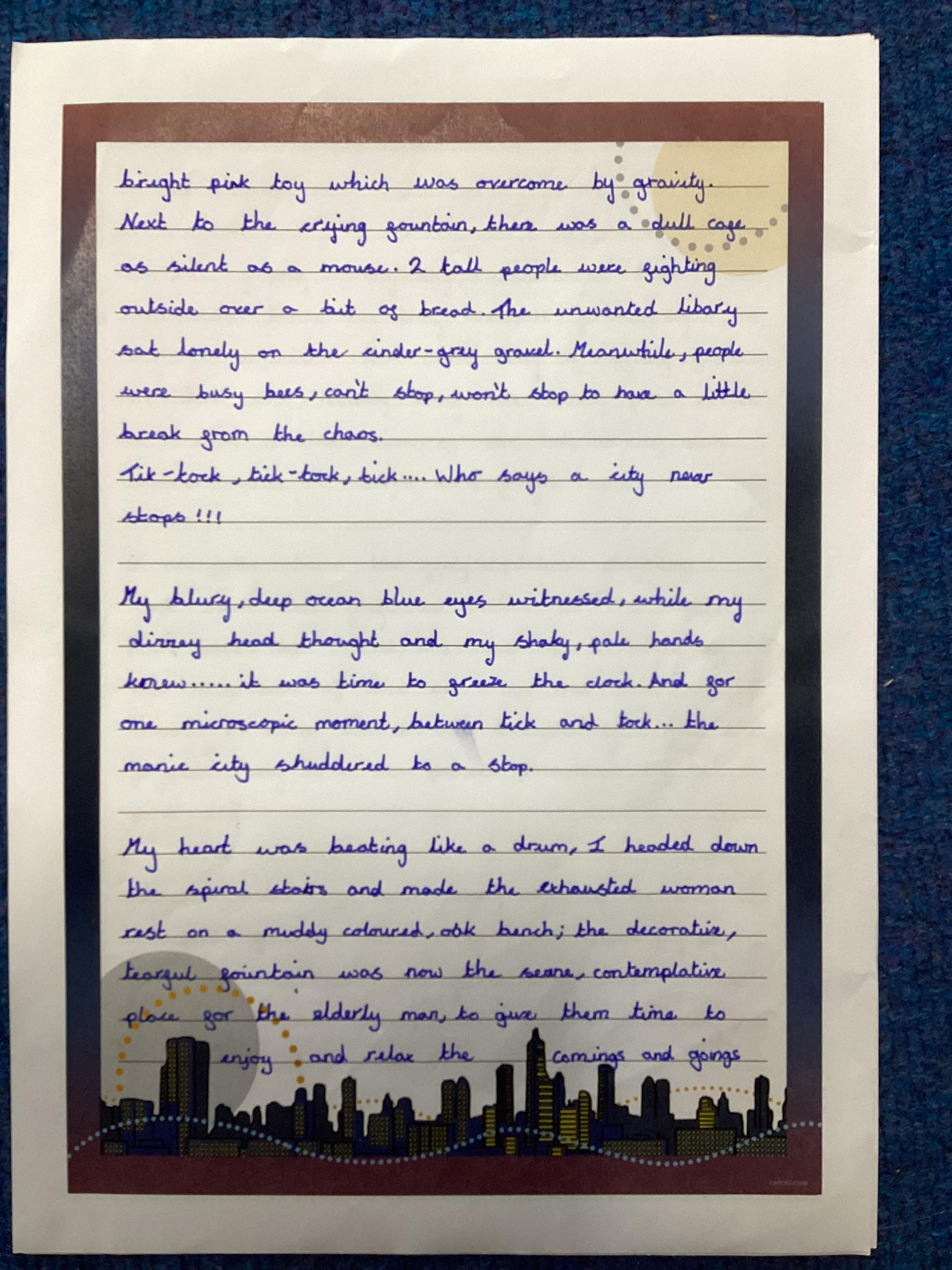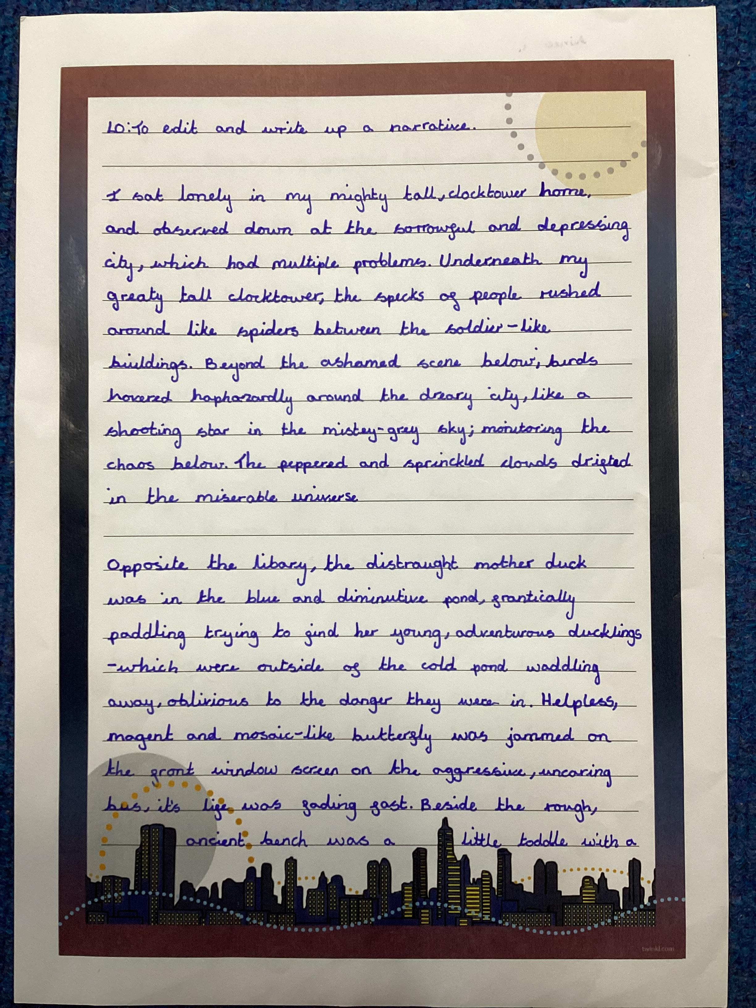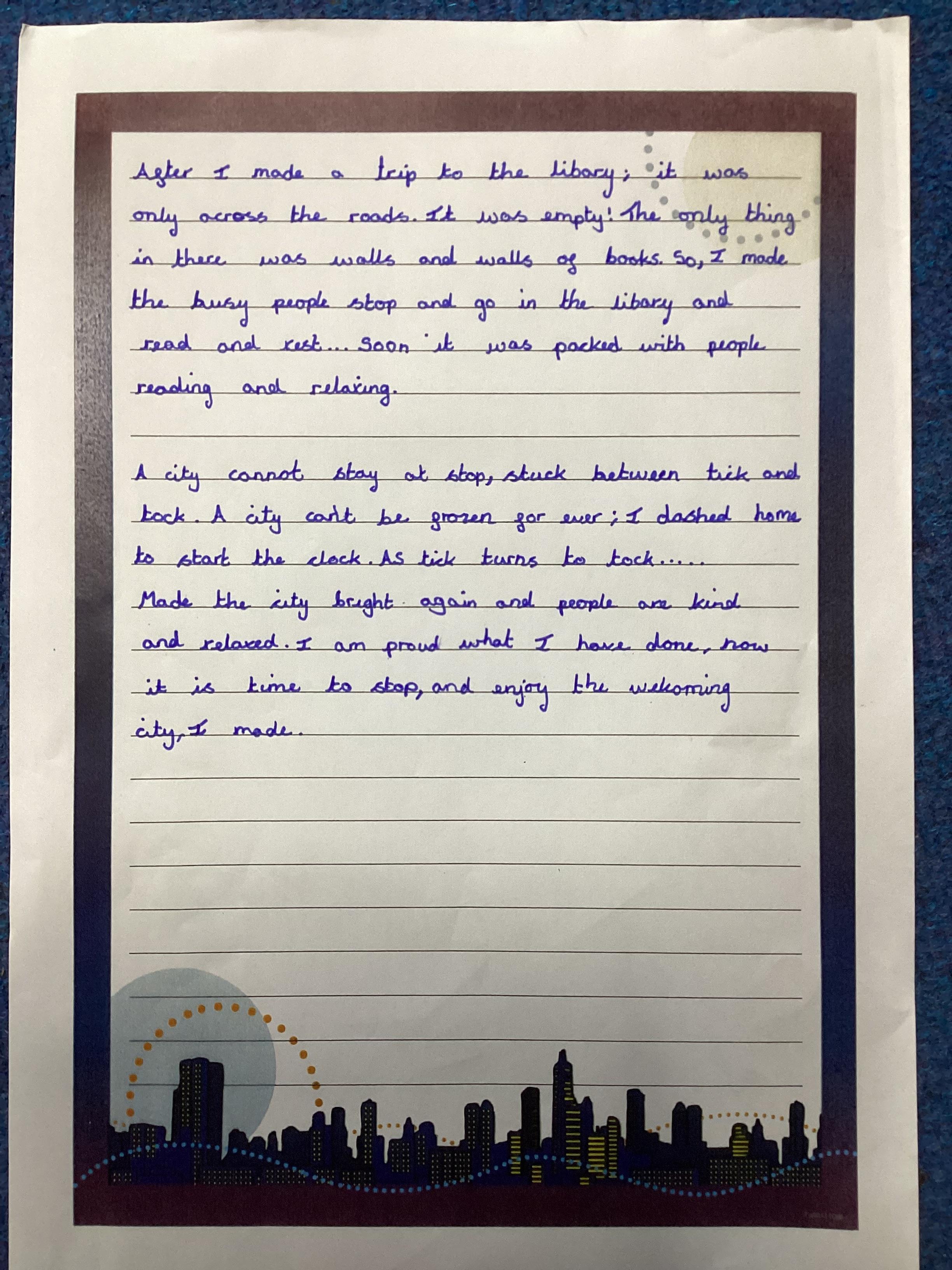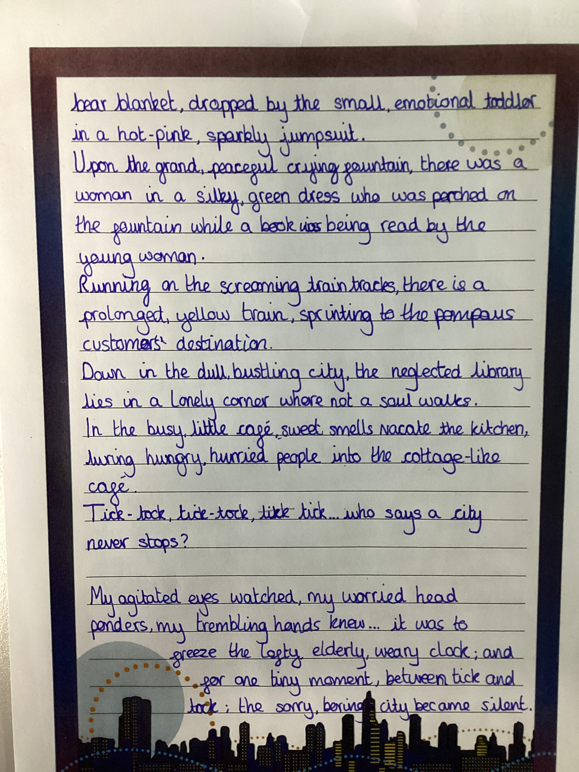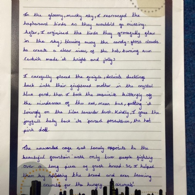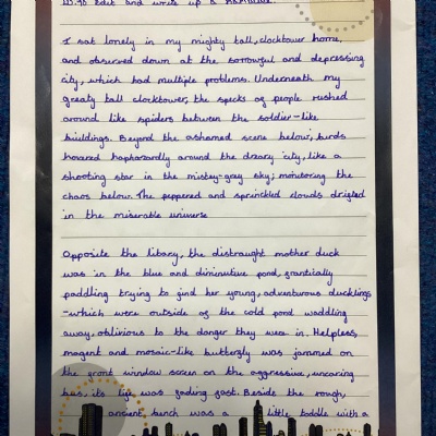 This page will showcase examples of the children's wonderful work. This is chosen not only for presentation but also effort and content.